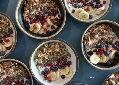 Wij zijn er van overtuigd dat gezond eten waanzinnig lekker is. Een van de basiselementen tijdens onze evenementen. Eet verse producten uit het seizoen, minimaliseer bewerkt voedsel en vermijd toegevoegde suikers. Hiermee voorkom je chronische ziekten en creëer je jouw ideale gewicht. Geef je spijsvertering en je immuunsysteem minimaal 14 uur rust door niet te eten en ervaar hierdoor meer energie. Beperk je (bulk)drinkmomenten tot 4 x per dag, een relaxed gevoel en meer focus is het resultaat. Daarnaast draagt gefermenteerd eten en drinken bij aan een gezonde en gevarieerde darmflora. Gevarieerd eten? Eet minimaal 75 verschillende voedingsmiddelen per week. Tot slot, gun jezelf af en toe ook iets dat minder gezond is :-).